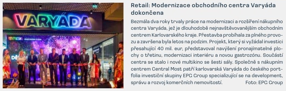 Retail: Modernization of the Varyáda shopping center completed - EPG GPI
